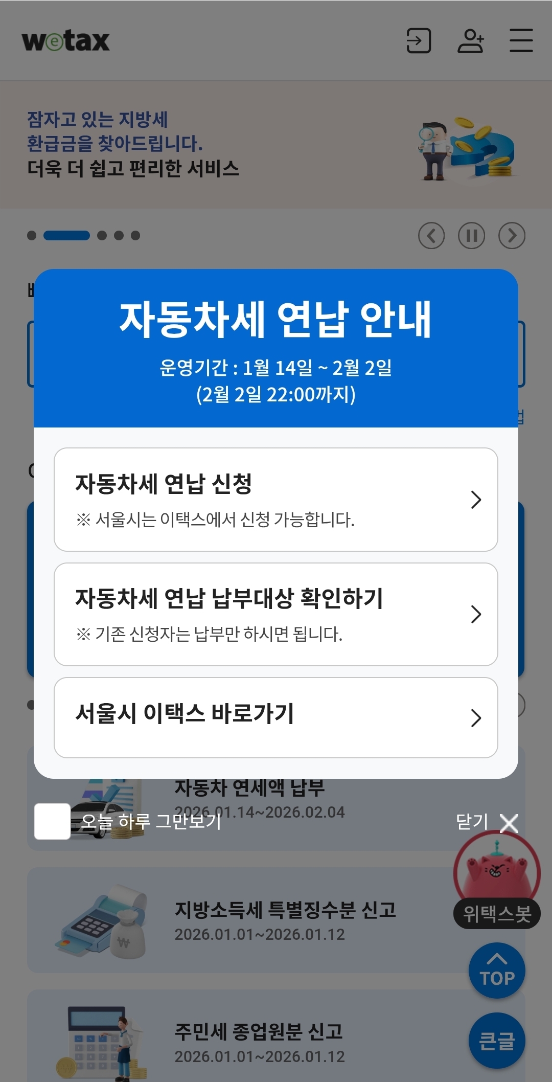 1.위택스에서 자동차세 연납 신청하는 방법